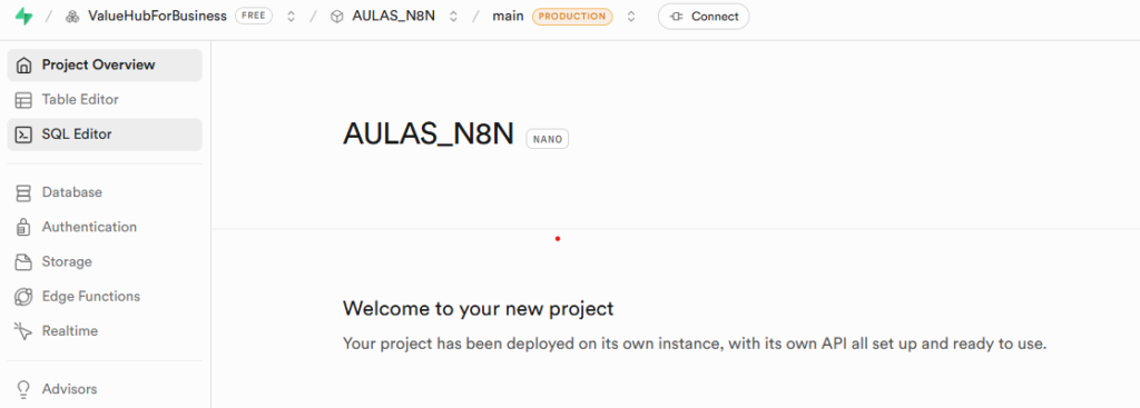 • Dentro do projeto em que iremos criar o banco vetorial, selecione a funcionalidade do “SQL Editor” na parte esqueda da tela, conforme imagem abaixo: